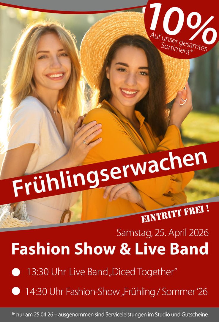 - Um 14.30 Uhr beginnt unsere Fashion-Show „Frühling/Sommer 2026“.